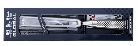 Europejski widelec do mięsa Global GF-24 o długości 16,5 cm sprawdzi się podczas serwowania pieczonego mięsa. Dwa ostrza bezproblemowo przytrzymają krojone mięso.