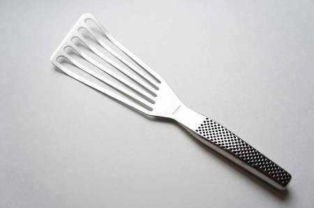 Łopatka cedzakowa Global GS-27 o długości 17 cm to wszechstronne narzędzie do przewracania potraw i odsączania nadmiaru płynu.
