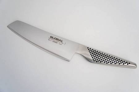 Nóż uniwersalny Global GS-5 o długości 14 cm doskonale spisuje się w siekaniu warzyw jednym prostym ruchem w dół.