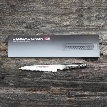 Mały nożyk uniwersalny do każde rodzaju pieczywa, nie przyciskając go nadmiernie do deski. Ostrze doskonale poradzi sobie z twardą, chrupiącą skórką, dzięki czemu możemy otrzymać cienkie kromki i zachować przy tym kształt pieczywa.