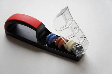 Ceramiczna ostrzałka wodna MinoSharp 550BR to uniwersalna trójfazowa ostrzałka, która poradzi sobie ze wszystkiego rodzaju nożami poza tymi z ostrzem ząbkowanym i jednostronnym szlifem. Przed użyciem należy pozostawić kółka ceramiczne w wodzie na około minutę, a następnie rozpocząć pracę od kółka z nr 1 i wykonać 6-8 przeciągnięć, czynność należy powtórzyć na kółku o wyższym numerze.
