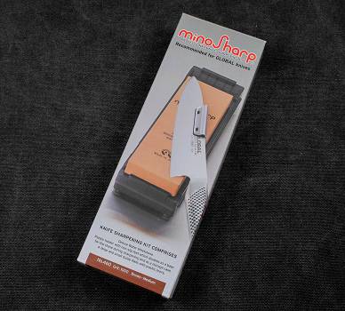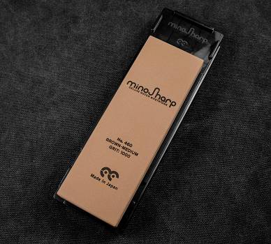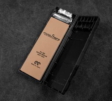 Profesjonalny kamień do ostrzenia marki MinoSharp o gradacji 1000. W skład zestawu wchodzą również 2 prowadnice pomagające utrzymać stały kąt podczas ostrzenia noży. Pudełko na kamień pełni również funkcję podstawki podczas ostrzenia, zapewniając bardzo dobrą stabilizację kamienia. Granulacja 1000 służy do regularnego podostrzania noża, o ile ostrze nie uległo poważniejszym zniszczeniom lub całkowitemu stępieniu.