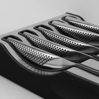 Praktyczny zestaw noży Global stanowi znakomity fundament indywidualnej kolekcji kuchennej, świetnie wypełni każdą kuchnie zapewniając wszystkie potrzebne noże do codziennej pracy.